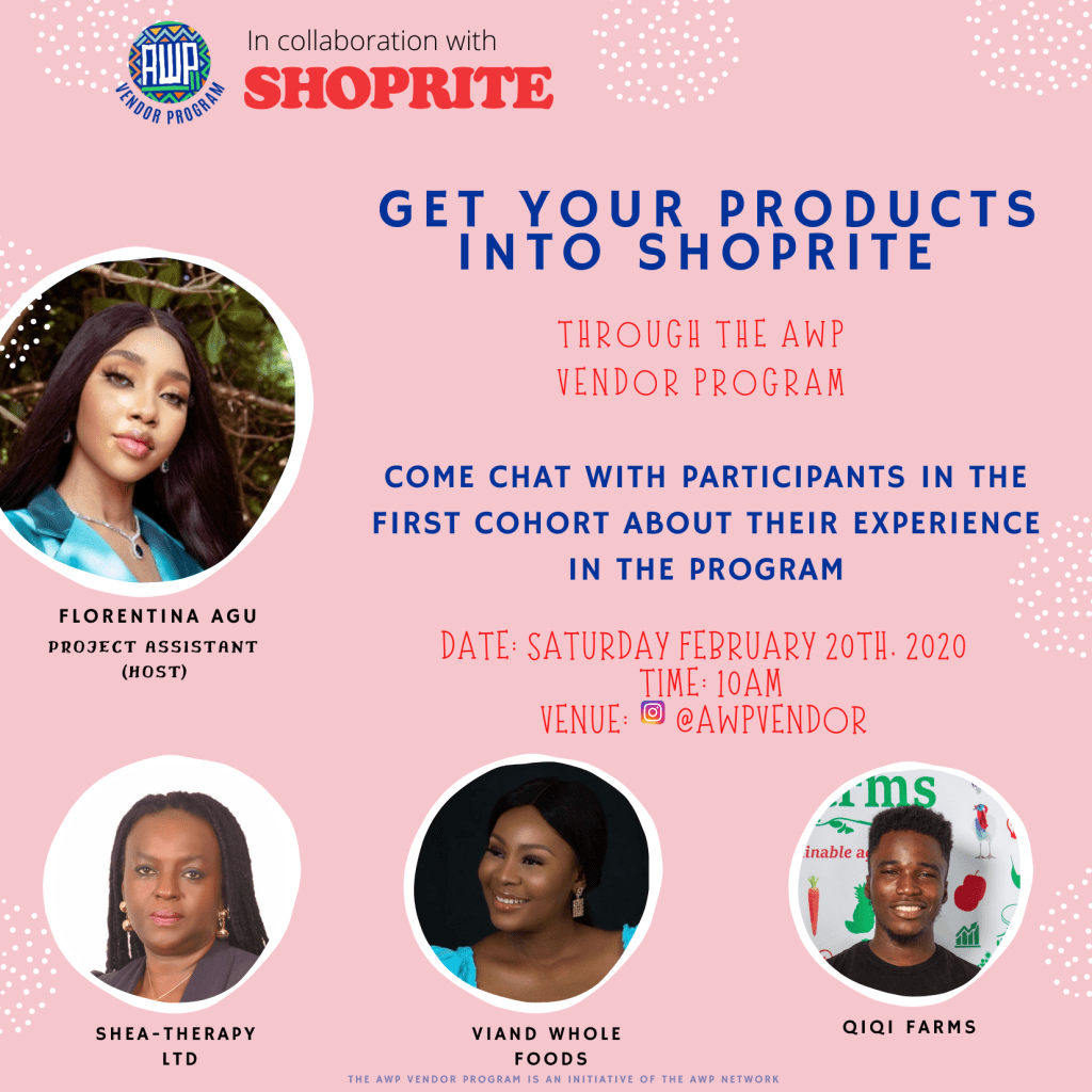 The competitive AWP Network Vendor program (@awpvendor), which launched last year on July 15, 2020, received over 2,500 vendor applications. Only 100 vendors were accepted into the program, 61 vendors were certified to complete the program and received the opportunity to pitch their products to ShopRite Nigeria.